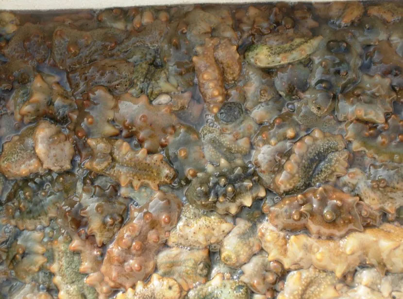 餌料:海參的養殖密度不大的話一般不需要投餌。尤其外海養殖,池塘養殖需要投餌的話也要投喂有機的或野生的餌料,餌料不足時可以投喂不超過總餌料量5%(以干物質計)的常規餌料。如果出現不可預見情況導致該年度常規餌料超過5%,在獲得了認證機構許可條件下,也不能超過總餌料量20%。餌料中的動物蛋白至少50%來源為不適于人類消費的物質。可以使用天然的礦物質添加劑、維生素、微量元素。